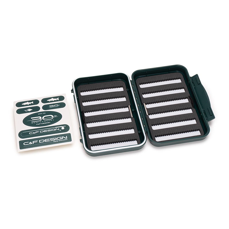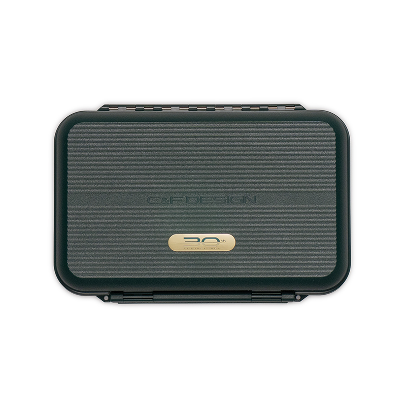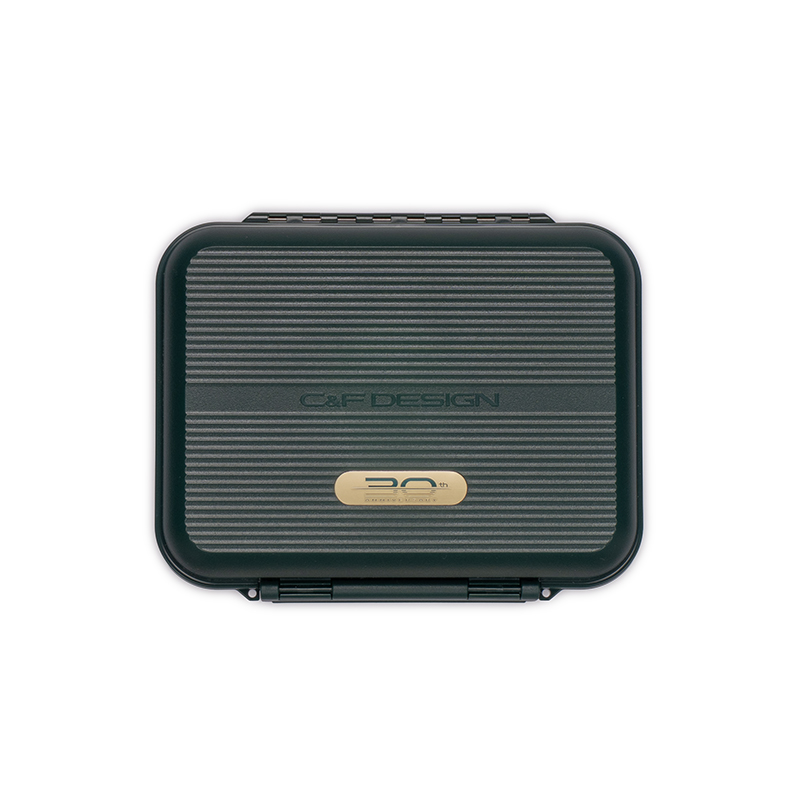 記念すべき30周年記念の限定商品として、私たちはコーポレートカラーでもあるアニバーサリーグリーンのシステムケース(3サイズ)を選びました。洗練されたデザインからは想像のつかない耐久性を備えたフライケースですから、シックで飽きのこないカラーを選択するべきだと思いました。品のある淡いゴールドのアルミプレートには30周年記念ロゴ。
